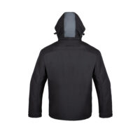 Kurtka softshell VOYAGER (100% poliester) w kolorze czarnym z ciemno-szarymi wstawkami na bakrach, kieszeniach bocznych oraz na kapturze. Odpinany kaptur z regulacją obwodu za pomocą stoppera. Dwie kieszenie piersiowe zapinane na zamek, Dwie kieszenie boczne zapinane na zamek. Obwód rękawów regulowany na rzep, zapewniając lepsze dopasowanie. Produkt spełnia wymogi normy PN-EN ISO 13688:2013.