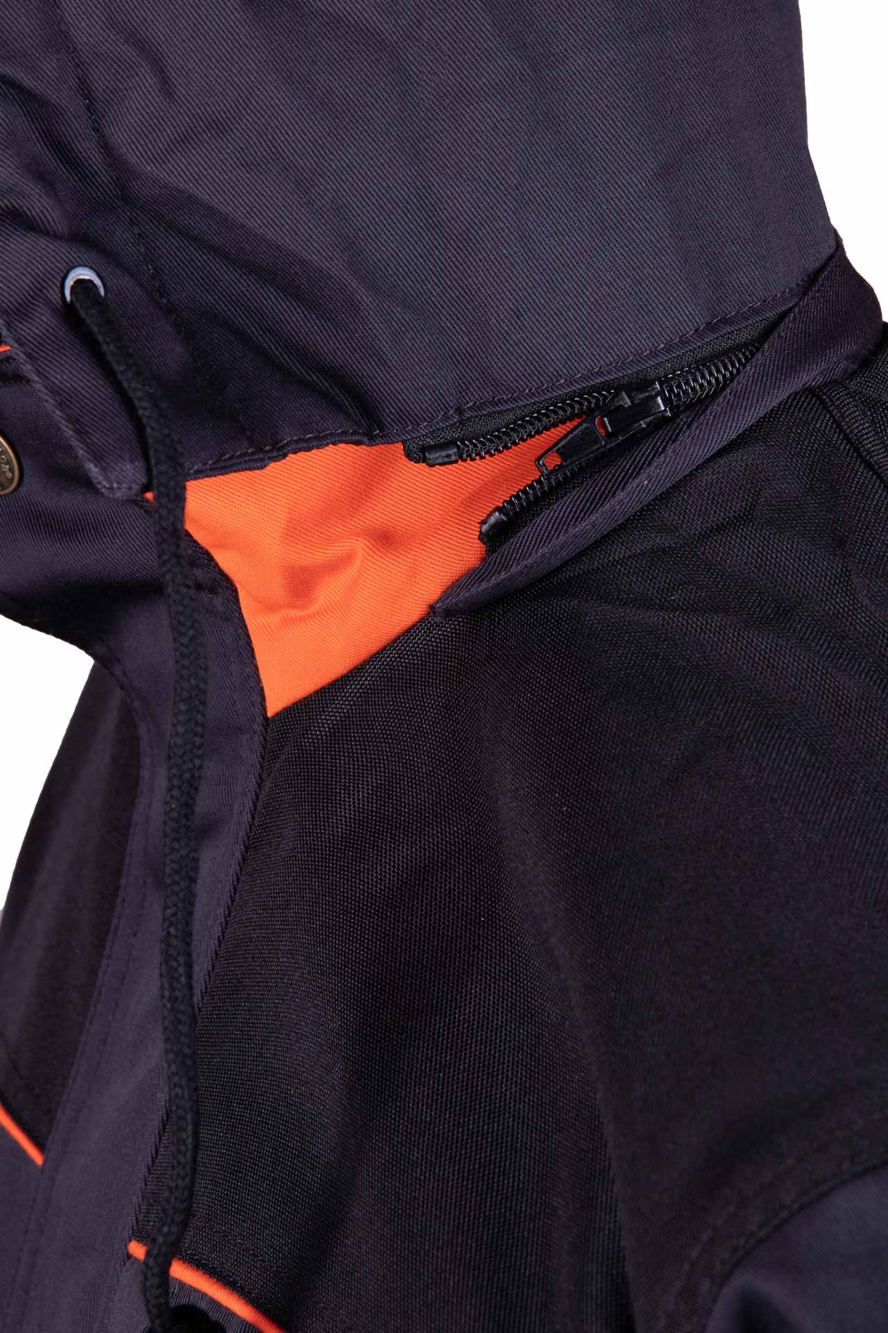 - Budowa/Szycie: Kurtka ma podwójne szwy, szyte mocną nicią, dużą ilość ryglówek w miejscach szczególnie narażonych na rozprucie, a także wzmocnienia z materiału OXFORD na ramionach i dodatkowe wzmocnienia na łokciach z tego samego materiału. Posiada także zaszewki na plecach, zwiększające swobodę ruchów oraz wstawki kolorystyczne i lamówki.