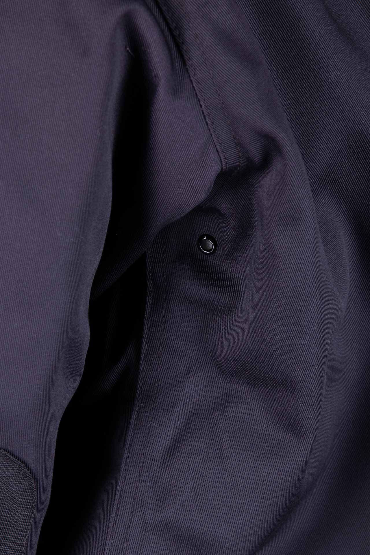 - Rękawy/Mankiety: Mankiety przy rękawach zapinane na napy, co zapewnia dodatkową ochronę i regulację.