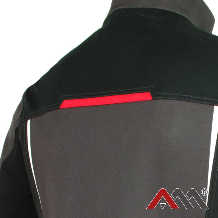 - Elementy odblaskowe: Znajdujące się z przodu i z tyłu kurtki elementy odblaskowe podnoszą bezpieczeństwo użytkownika podczas pracy w słabym oświetleniu.