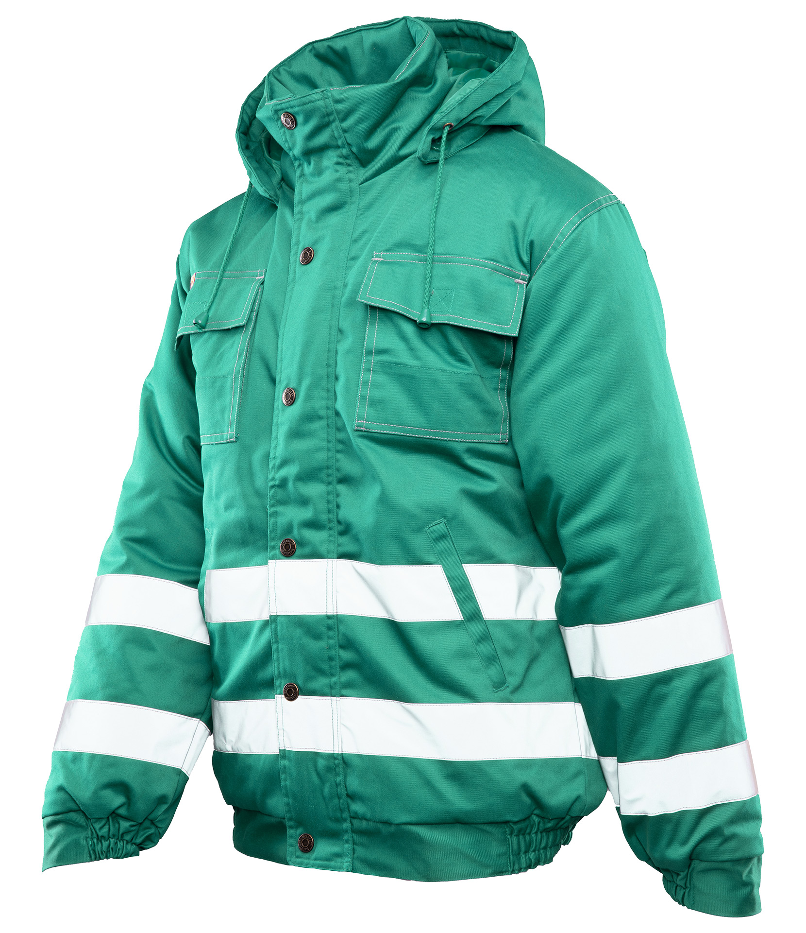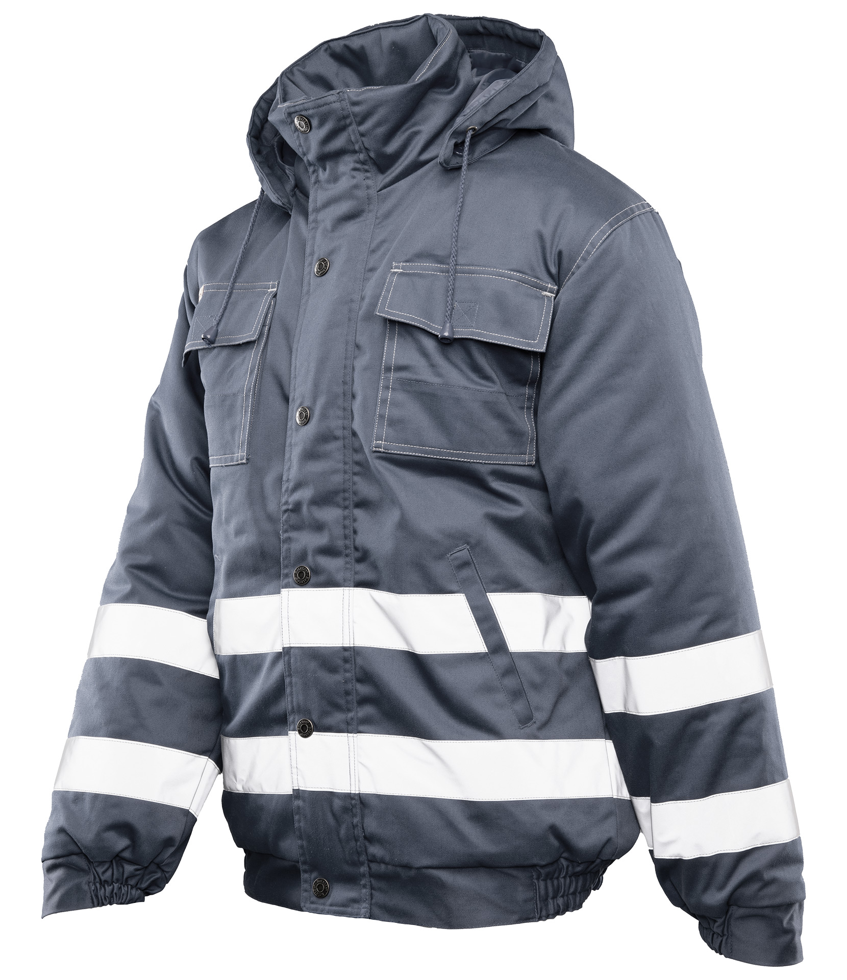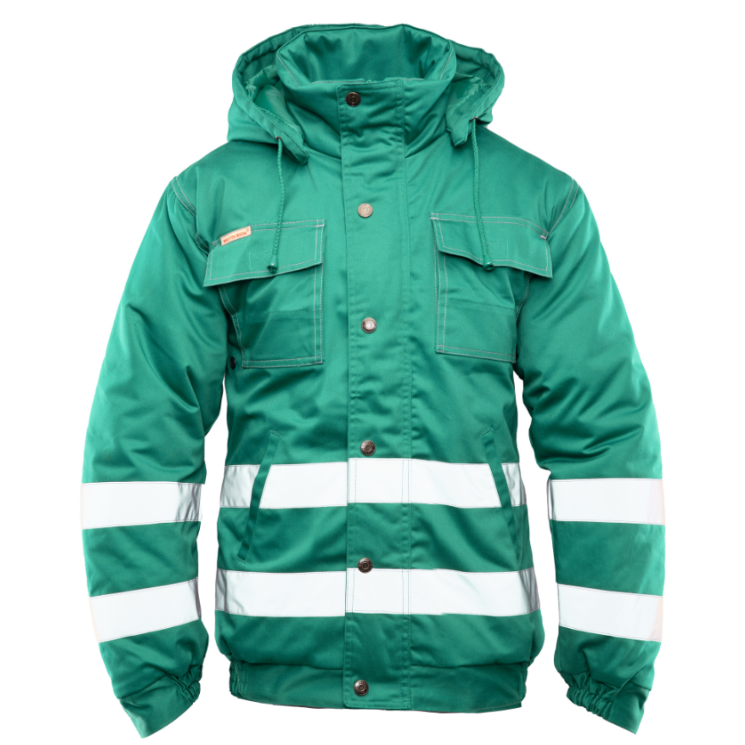 - Elementy odblaskowe: podwójne pasy odblaskowe przeszyte podwójnymi szwami, zwiększają widoczność i bezpieczeństwo podczas pracy w słabo oświetlonych warunkach.