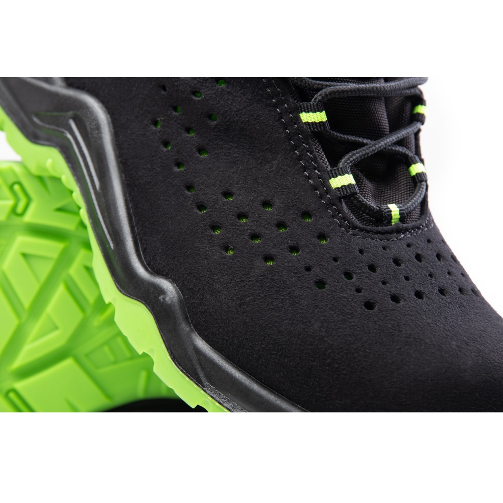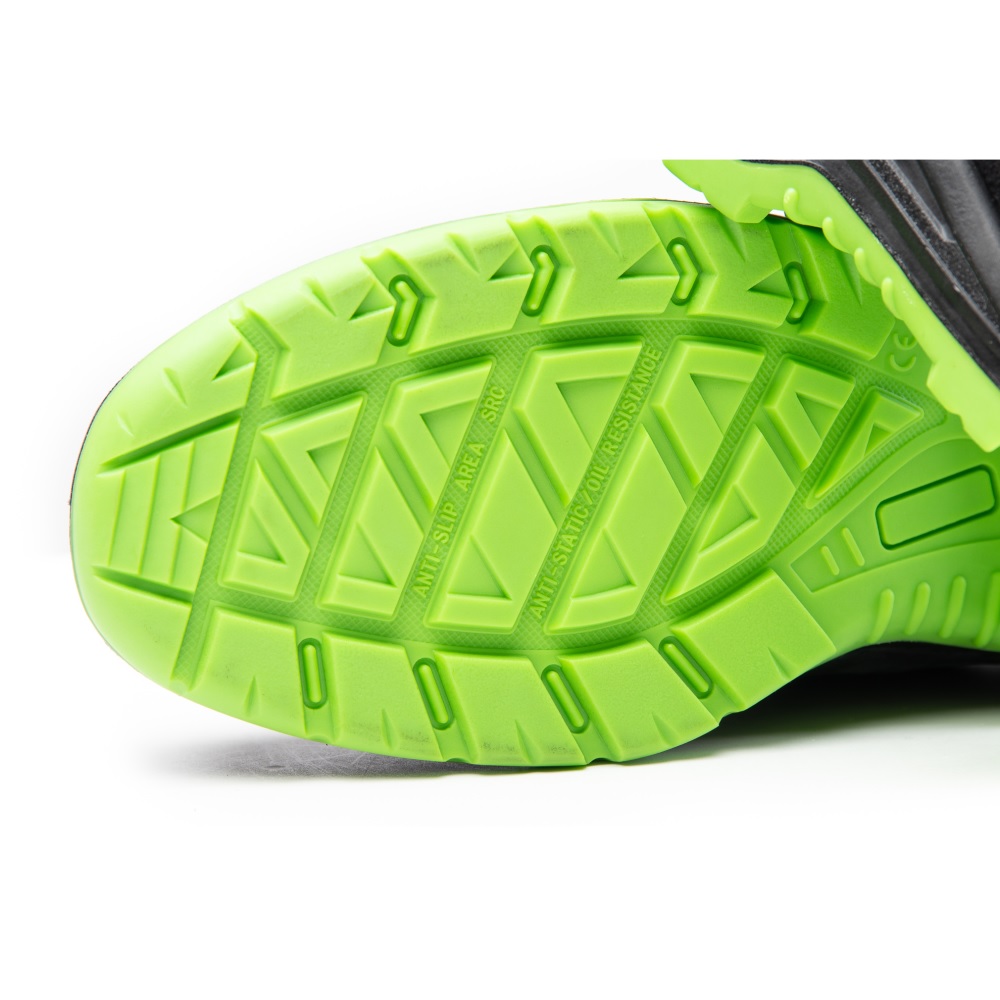 Podeszwa: PU/TPU, o podwójnej gęstości – zapewniająca stabilność, amortyzację i wytrzymałość. Dodatkowo, podeszwa jest olejoodporna, antyelektrostatyczna, absorbuje energię pięty i posiada właściwości antypoślizgowe SRC, co zwiększa bezpieczeństwo na różnych powierzchniach.