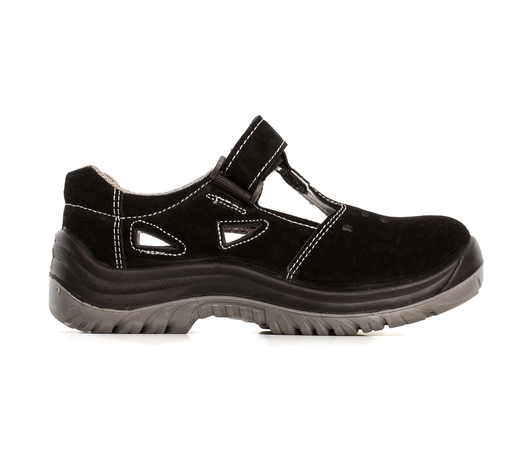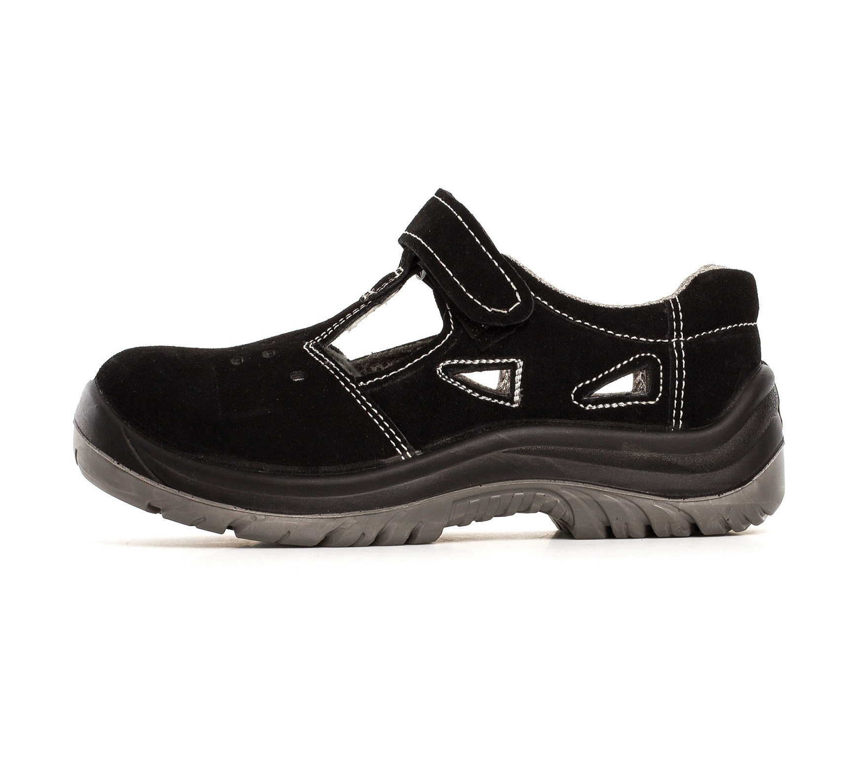 Sandały ochronne KAMARI z metalowym podnoskiem ochronnym. Cholewka obuwia wykonana jest ze skóry welurowej, zapięcie na rzep. Podeszwa z dwuwarstwowego poliuretanu PU/PU, antyelektrostatyczna. Warstwa zewnętrzna twardsza, wewnętrzna bardziej miękka. Absorpcja energii w części piętowej. Podeszwa antypoślizgowa. Wyściółka z materiałów o właściwościach higroskopijnych. Głęboki protektor zapewniają wysoką stabilność obuwia i komfort chodzenia. Kategoria S1.