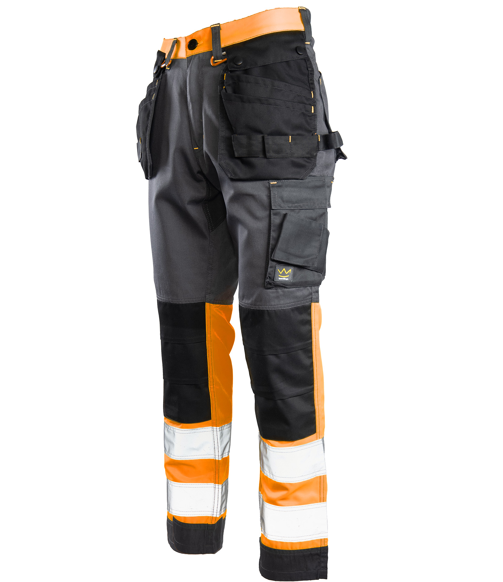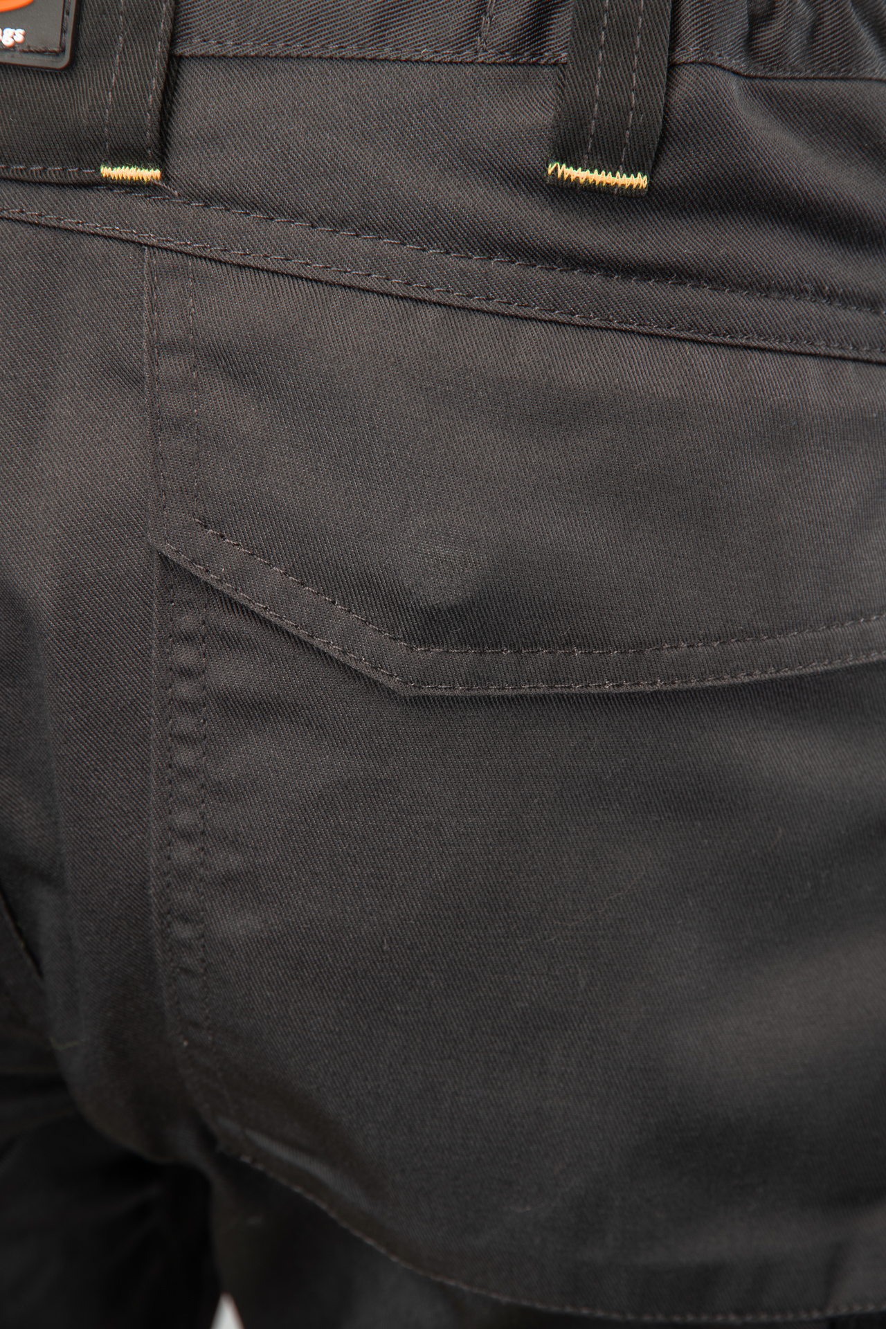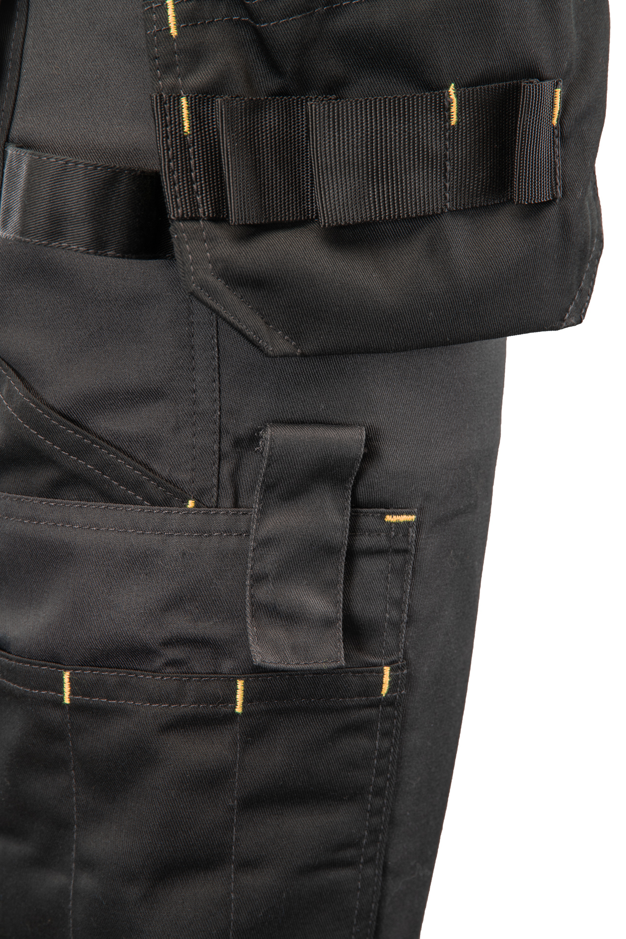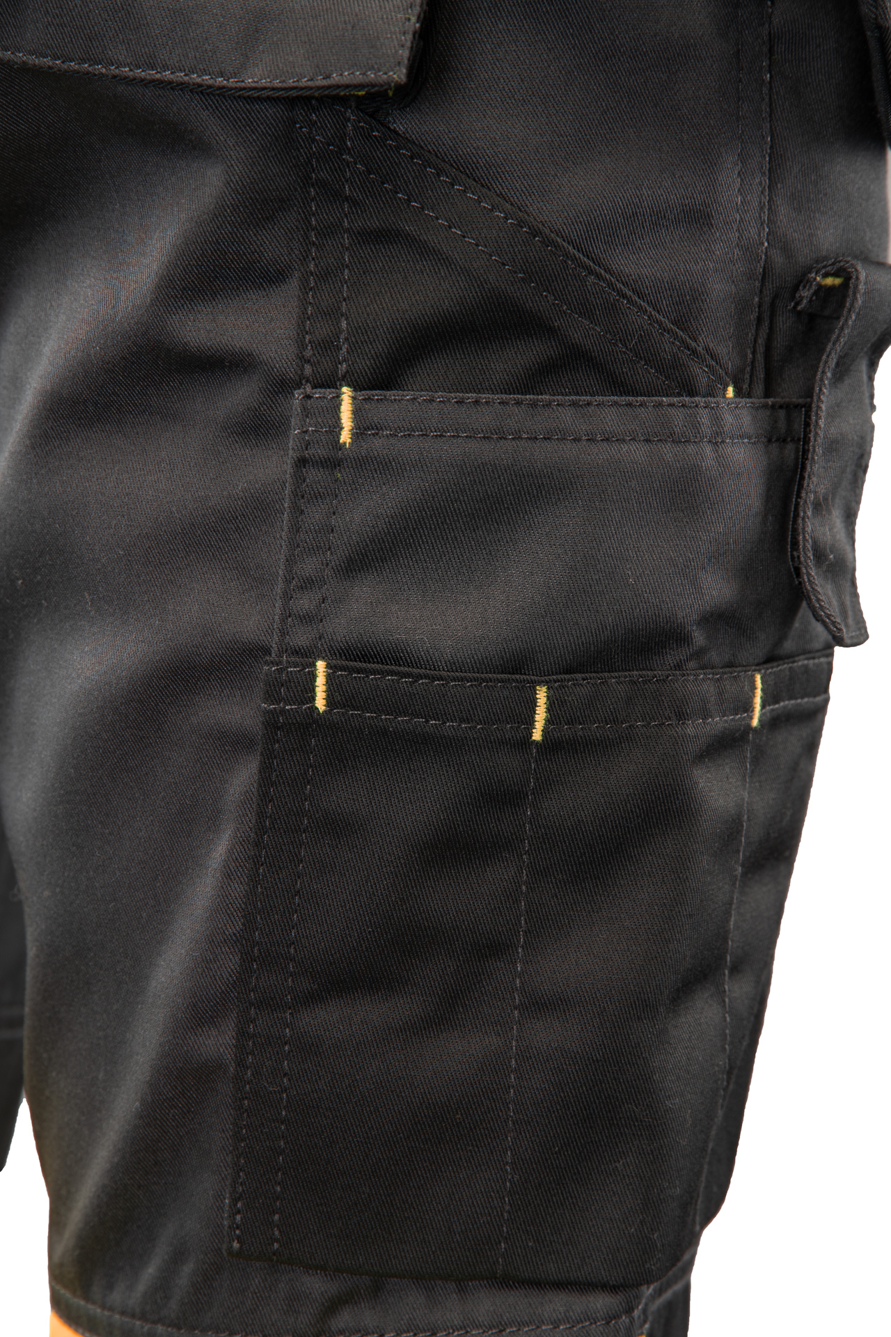 • Kieszenie: Spodnie wyposażone są w różne kieszenie, co znacznie ułatwia przechowywanie narzędzi i innych niezbędnych przedmiotów. Znajduje się tu kieszeń w tylnej części spodni, wzmocnione kieszenie boczne, kieszeń na komórkę, kieszeń na dokumenty, kieszeń na miarkę „metrówkę”, oraz dwie chowane kieszenie monterskie. To duża ilość praktycznych rozwiązań.