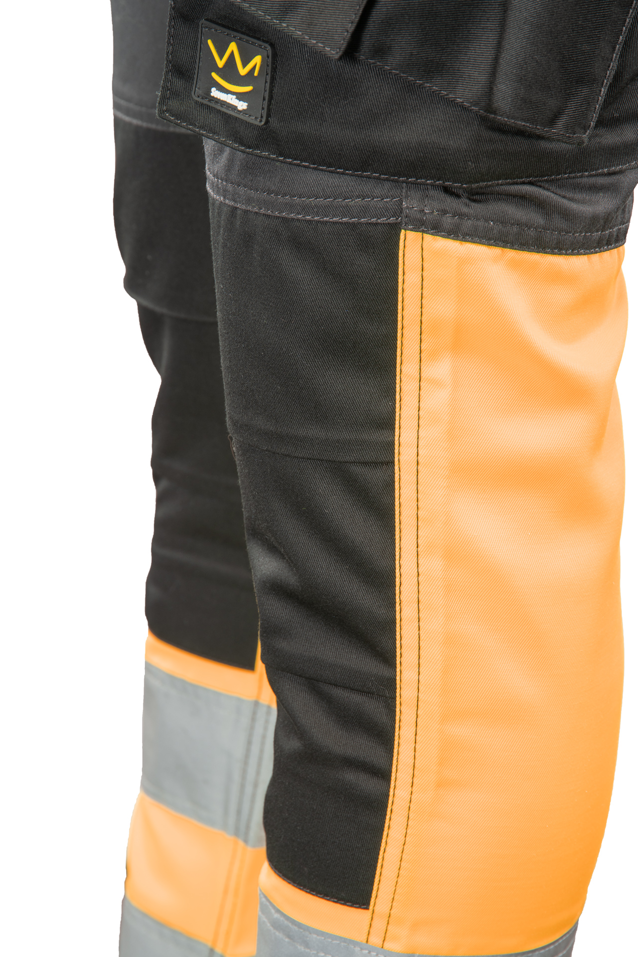 • Elementy odblaskowe: Podwójne taśmy odblaskowe o właściwościach fluorescencyjnych zwiększają widoczność noszącego, co jest ważne szczególnie przy pracy w warunkach słabej widoczności.