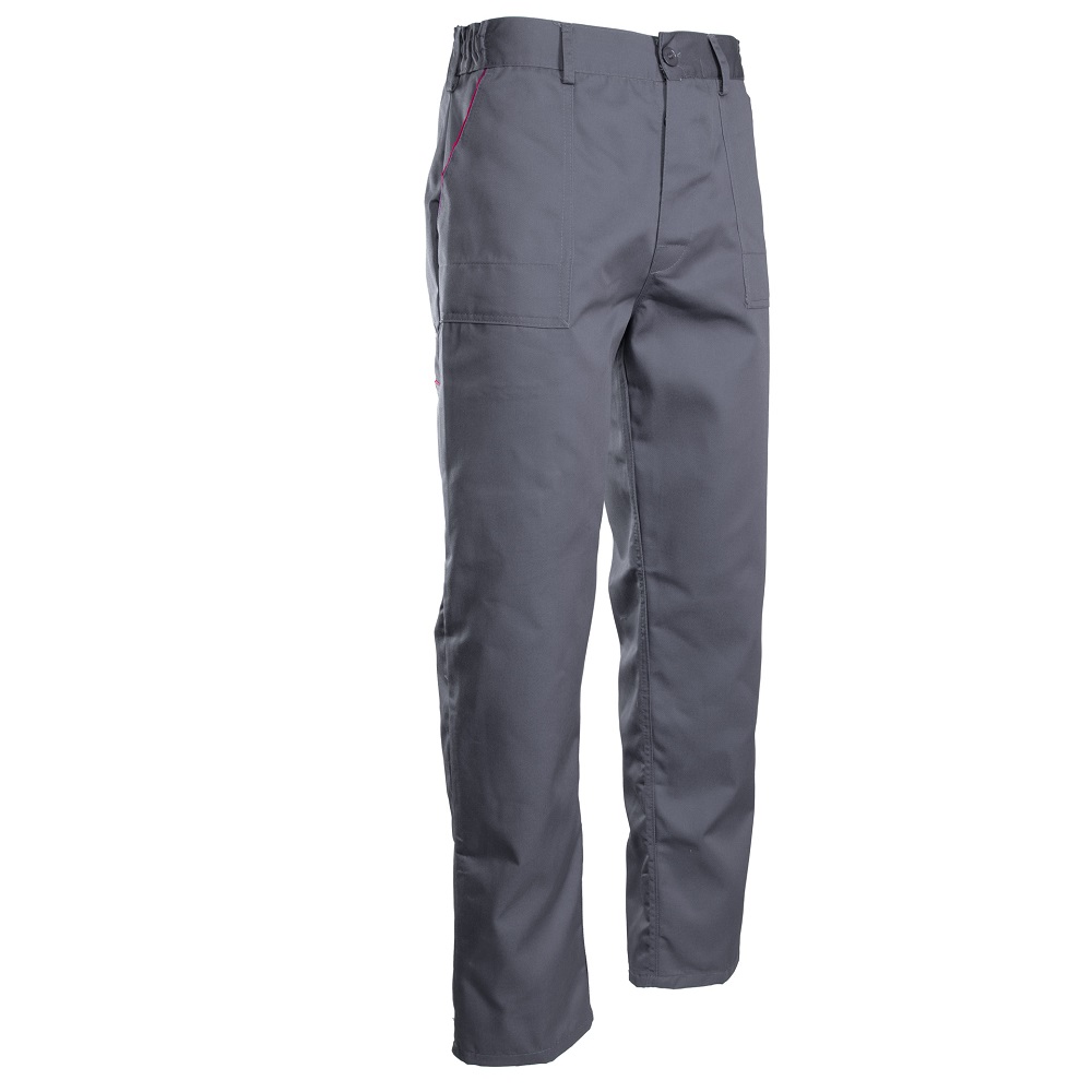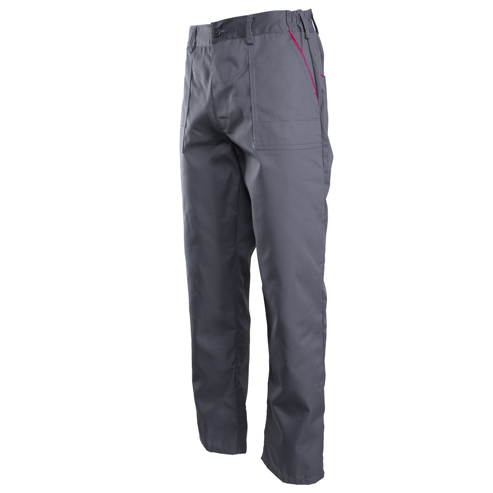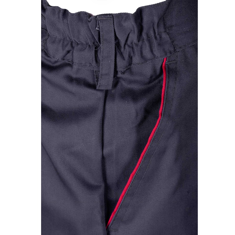 • Budowa/Szycie: Spodnie posiadają lamówkę kolorową, co może pomóc w rozróżnieniu części spodni i dodaje estetyki. Mają podwójne szwy, które są szyte mocną nicią, co zwiększa ich trwałość i wytrzymałość w miejscu pracy.