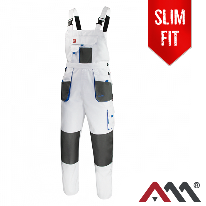 Spodnie ochronne CLASSIC White w formie ogrodniczek to nie tylko praktyczne narzędzie do pracy, ale także stylowy element odzieży roboczej, który łączy solidność z atrakcyjnym wzornictwem.