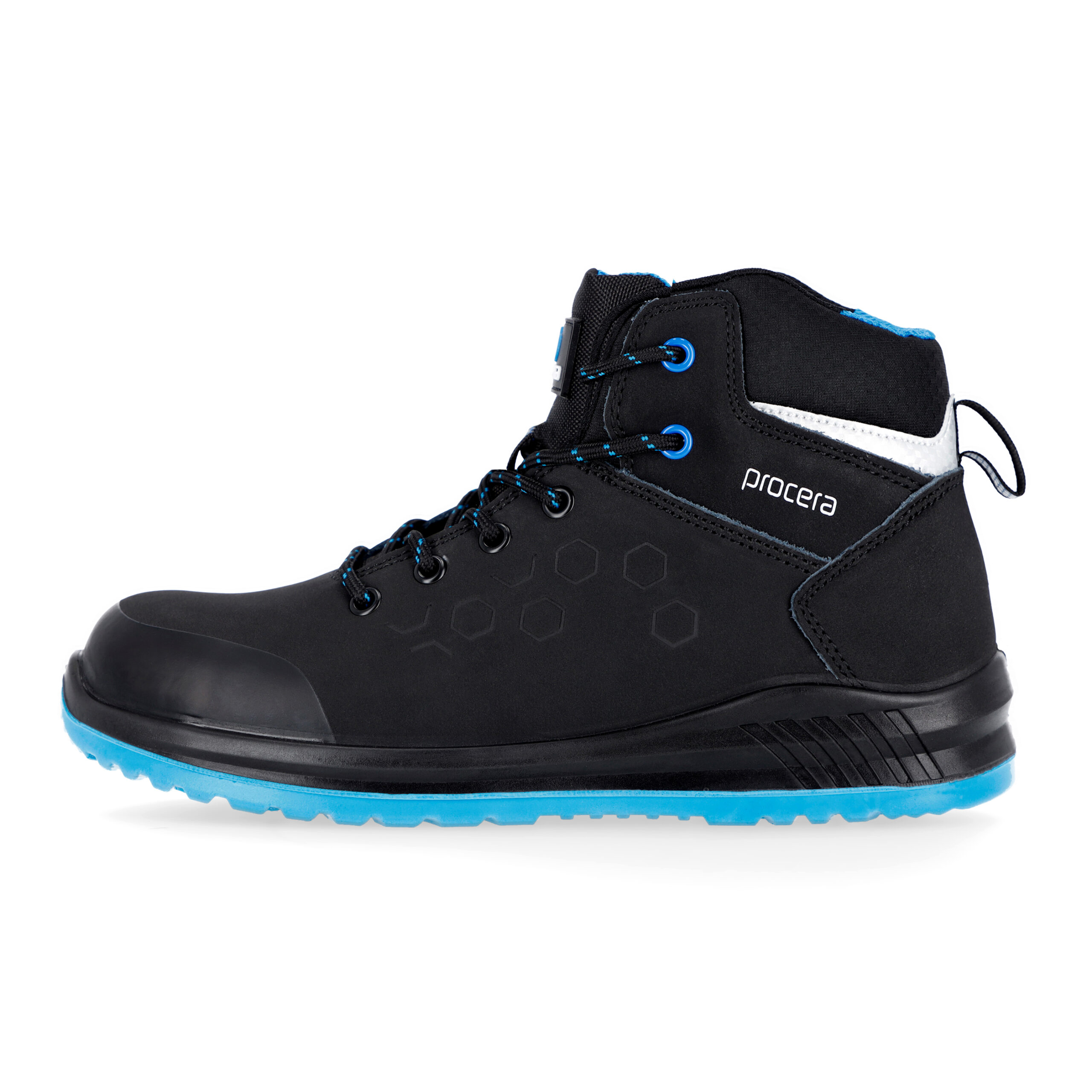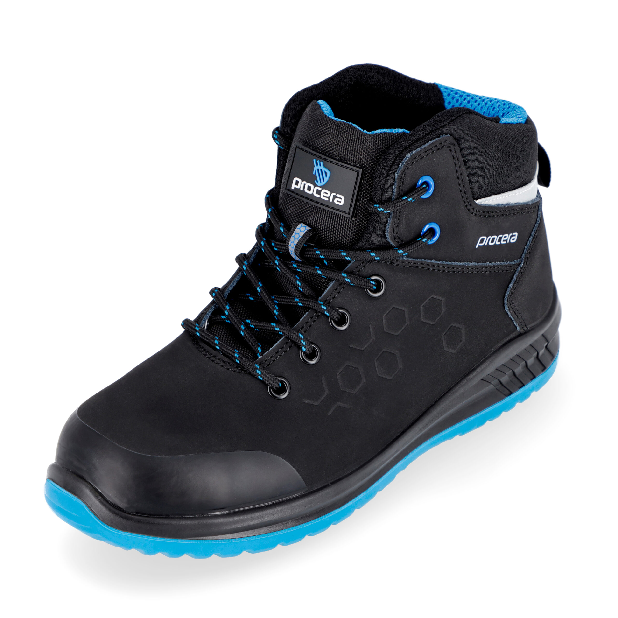 Trzewiki bezpieczne ASTER S3 SR ze stalowym podnoskiem ochronnym odpornym na uderzenia z energią 200 J i zgniecenia 15kN wyposażone w stalową wkładkę antyprzebiciową. Cholewka obuwia wykonana jest ze skóry nubukowej. Podeszwa antypoślizgowa z dwugęstościowego poliuretanu PU/PU, antyelektrostatyczna, olejoodporna. Klasa odporności na poślizg SR. Absorpcja energii w części piętowej. Wyściółka z oddychającego materiału 3D Mesh. Nowoczesny design. Spełniają wymagania normy EN ISO 20345:2022 S3 SRC.
