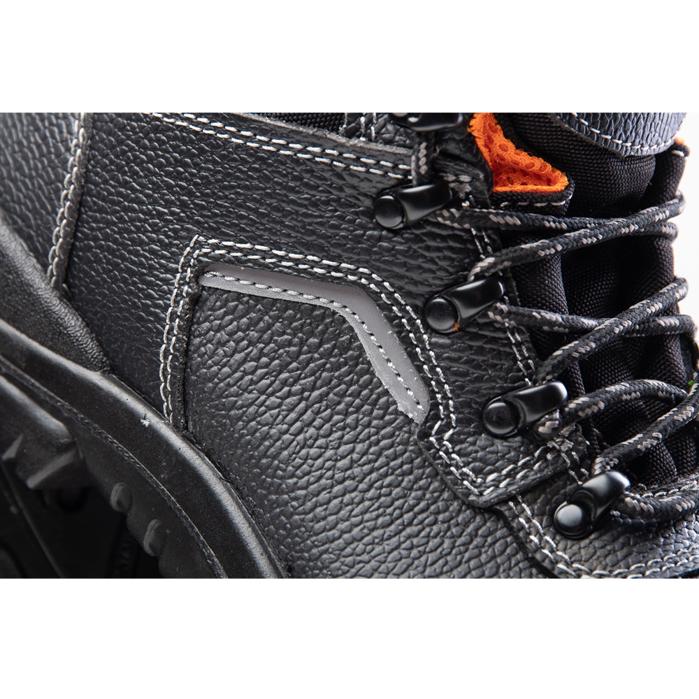 Podnosek: Kompozytowy, wytrzymały na uderzenia z energią 200 J oraz zgniecenia do 15 kN, chroniący stopę przed uszkodzeniami.
